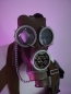 Alte modifizierte Gasmaske mit Schlauch, Filter und Tasche.